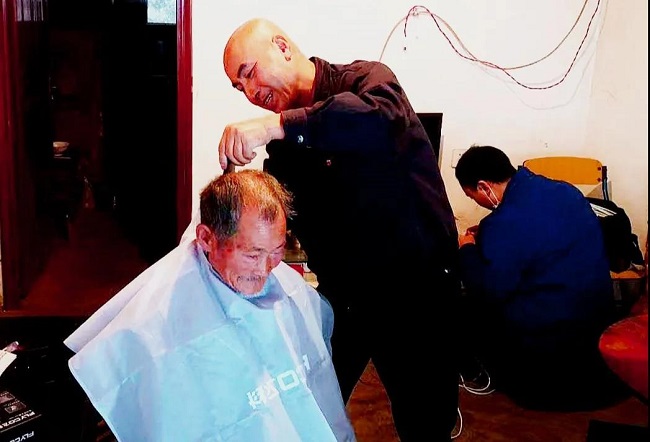 在貧困戶孤寡老人張萬祿家中,不僅為他送去了冬被,志愿者還為他理了發(fā),幫助他整理了家務(wù)。