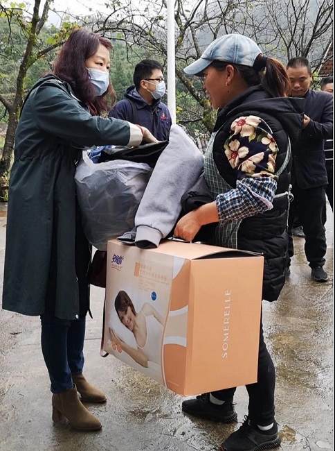 在結(jié)對(duì)認(rèn)親走訪活動(dòng)中,彭虹來到貧困戶魯明秀家中,詳細(xì)了解了她的家庭狀況、子女就學(xué)情況,看到她生活條件良好,彭虹非常高興,鼓勵(lì)她堅(jiān)定信心、脫貧致富。并送去了羊毛冬被、小孩衣物等生活用品。