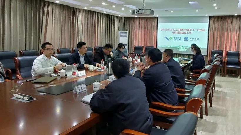 在工作訪問交流中,王飛對萬航模鍛在C919、ARJ21及CR929三大民機項目的研發(fā)合作上給予中國商飛的大力支持和幫助表示感謝,并結合中國商飛三大民機“十四五”戰(zhàn)略規(guī)劃,就民機項目深化合作進行了交流。