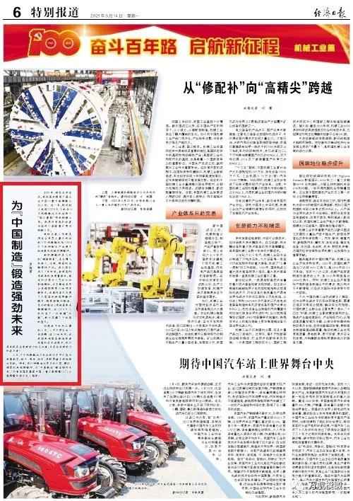 6月14日,經(jīng)濟日報在第六版特別報道《奮斗百年路,啟航新征程——機械工業(yè)篇》中,刊發(fā)羅恒軍同志文章《為“中國制造”鍛造強勁未來》。全文如下: