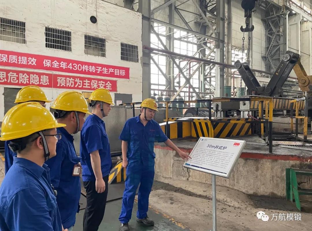 近日,萬(wàn)航模鍛熱處理廠黨支部、技術(shù)開發(fā)部黨支部組織黨員、入黨積極分子參觀了二重裝備鑄鍛公司熱處理廠噴淬裝置和30米井式爐。