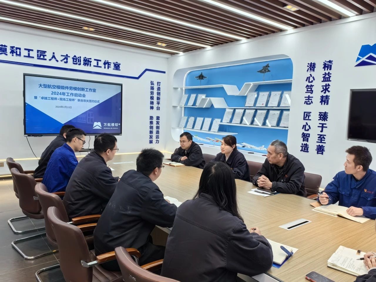 近日,萬航模鍛大型航空模鍛件勞模創(chuàng)新工作室舉行“卓越工程師+現(xiàn)場工程師”聯(lián)合攻關(guān)項目簽約儀式。4項聯(lián)合攻關(guān)項目簽約。