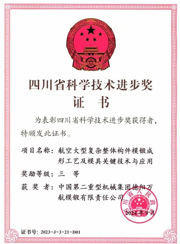 9月10日,在成都舉行的四川省科技大會傳來喜訊,萬航模鍛兩項(xiàng)科技成果分獲四川省科學(xué)技術(shù)進(jìn)步獎一等獎、三等獎。公司獲獎代表上臺領(lǐng)獎。