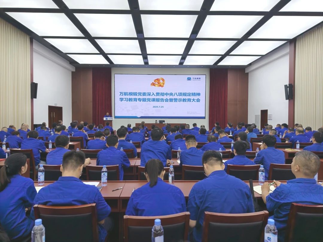 7月25日,萬(wàn)航模鍛黨委召開深入貫徹中央八項(xiàng)規(guī)定精神學(xué)習(xí)教育專題黨課報(bào)告會(huì)暨警示教育大會(huì)。中國(guó)二重黨委委員、副總經(jīng)理,萬(wàn)航模鍛黨委書記、董事長(zhǎng)向彪以《以永遠(yuǎn)在路上的恒心和韌性,一刻不停推進(jìn)作風(fēng)建設(shè)》為題作專題黨課報(bào)告,并開展警示教育。萬(wàn)航模鍛黨委委員、副總經(jīng)理張鵬主持會(huì)議。
