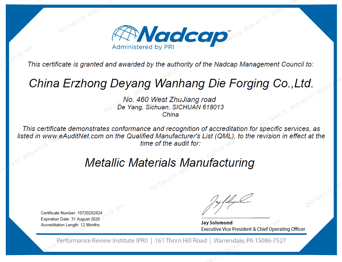 近日,萬航模鍛順利通過國際權(quán)威認(rèn)證機(jī)構(gòu)NADCAP的嚴(yán)格審核,成功獲得鍛造特種工藝認(rèn)證證書,成為國內(nèi)少數(shù)具備NADCAP鍛造資質(zhì)的企業(yè)。